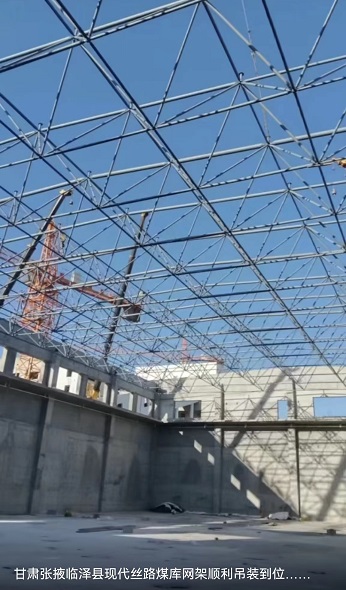 甘肃张掖临泽县现代丝路煤库网架安装就位