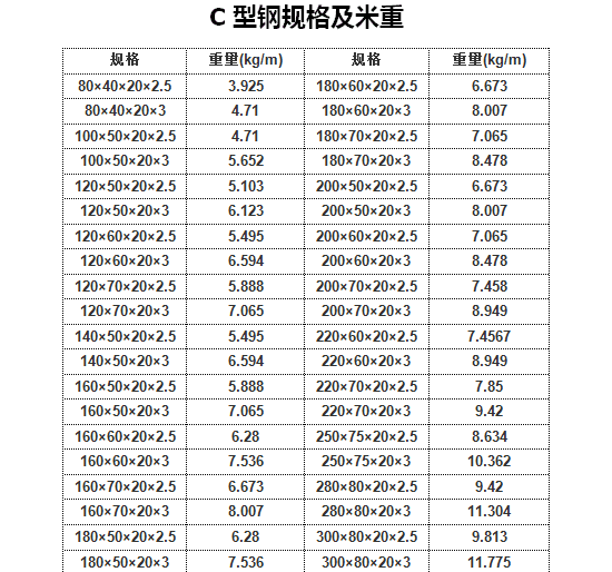 C型钢规格及米重