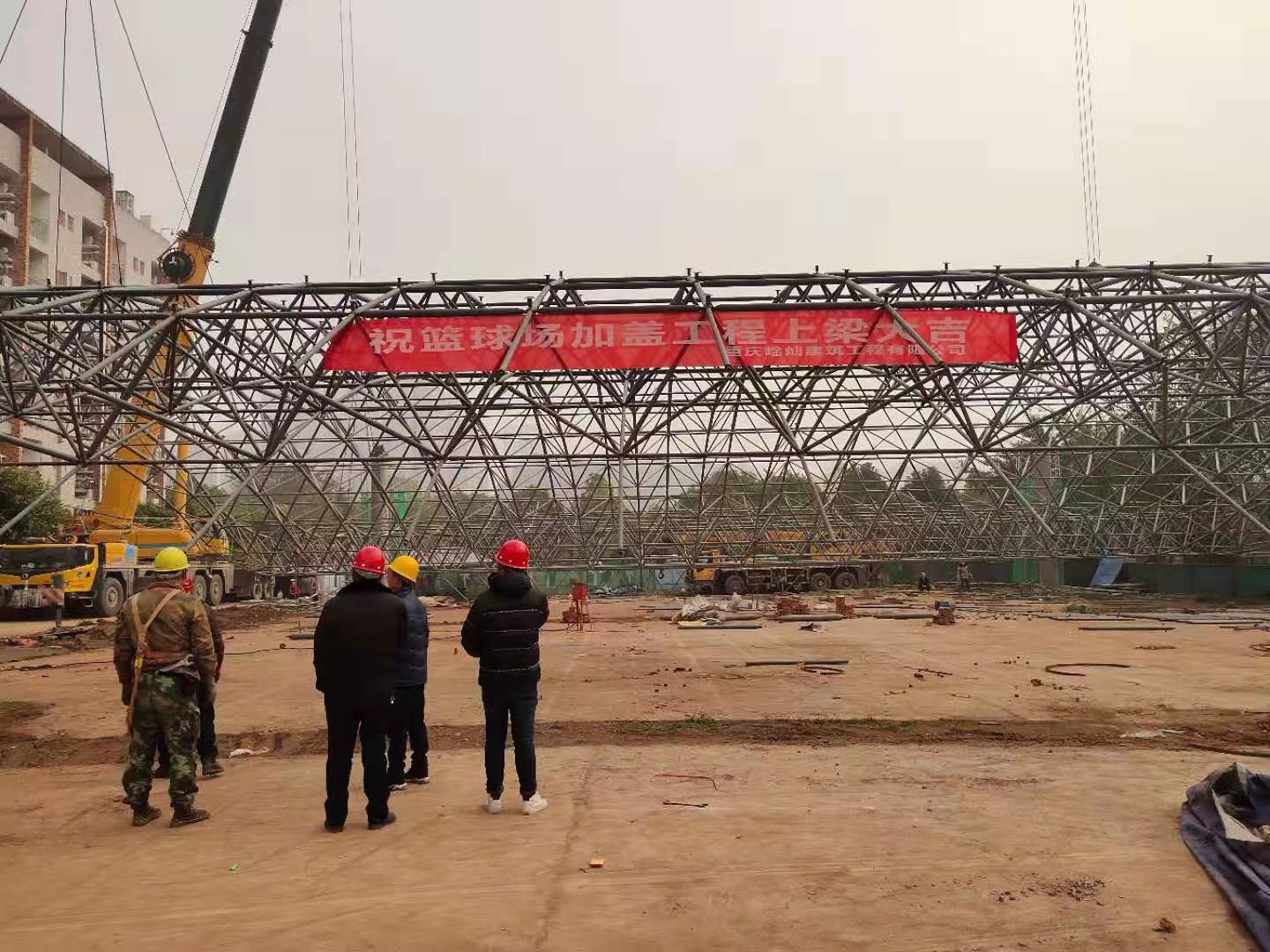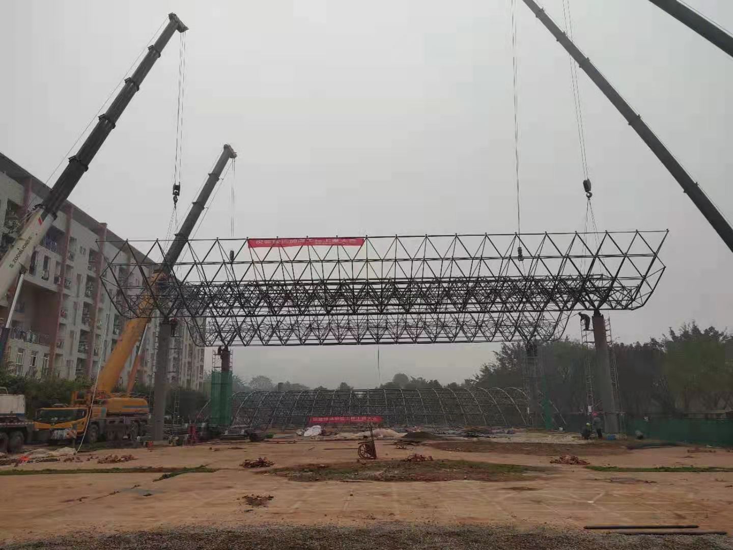重庆商业学院合川校区篮球架网架拼装中