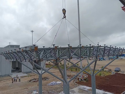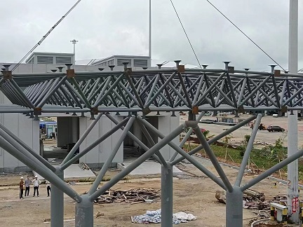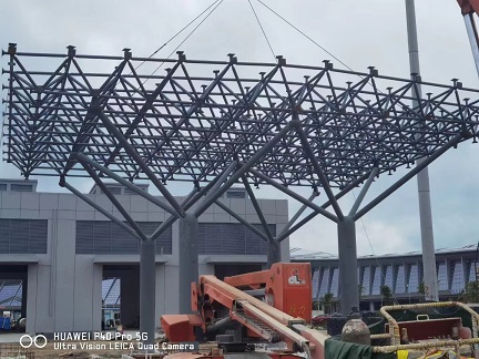黔东南苗族侗族自治州 从江县第二民族高级中学网架安装结束,下面进行屋面板安装